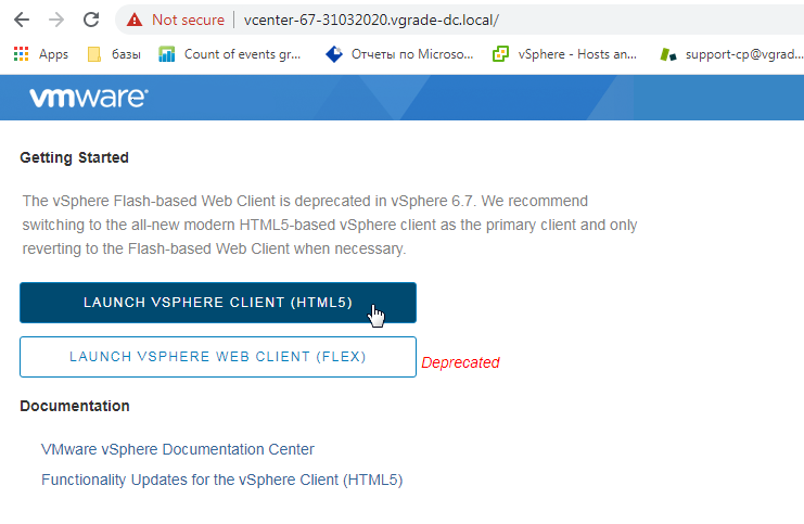 Так получилось, что у нас доменная машина, поэтому заходим на домен контроллер и добавляем DNS запись для vCenter: vcenter-67-31032020.vgrade-dc.local и ip адрес 192.168.0.108.
