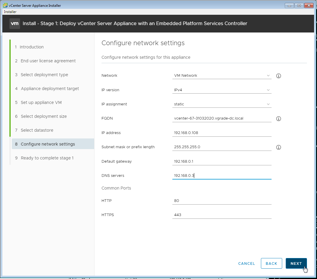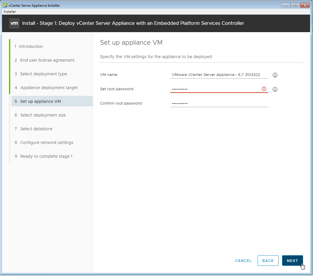 В зависимости от количества ESXi хостов и количества виртуальных машин выбираем размер vCenter.