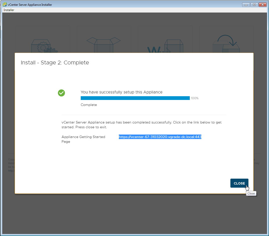 После того, как установка закончилась, переходим к конфигурированию vCenter.