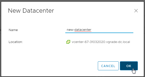 В Actions выбираем New Datacenter. В этот датацентр будут позже добавлены ESXi.