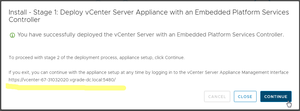 После того, как установка закончилась, переходим к конфигурированию vCenter.