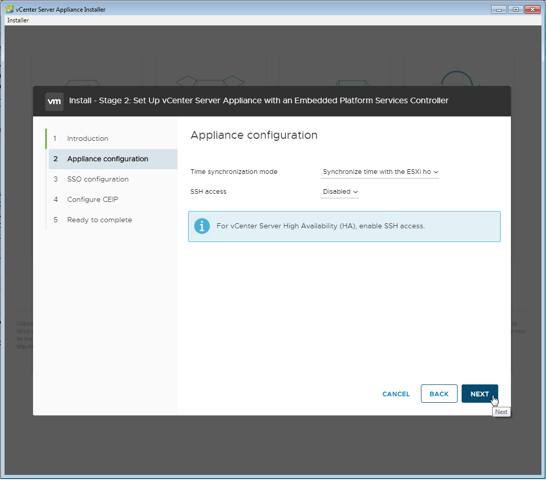 В зависимости от количества ESXi хостов и количества виртуальных машин выбираем размер vCenter.